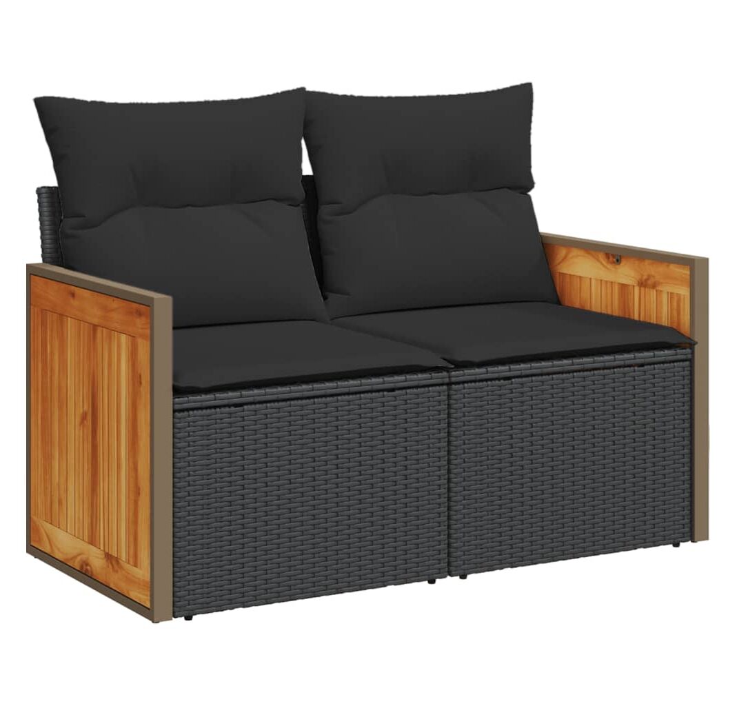 Ratan PE, oțel vopsit electrostatic, lemn masiv de acacia cu finisaj în ulei