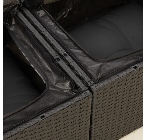 - Funcție de depozitare cu sac rezistent la apă: Fiecare scaun de grădină are spațiu de depozitare sub șezut, fiind complet datorită unui sac rezistent la apă pentru depozitarea pernelor, jucăriilor și a altor articole. Sacii interiori au o husă superioară și pot fi prinși în siguranță de scaune cu elemente de fixare cu bandă adezivă cu arici, pentru o stabilitate sporită.