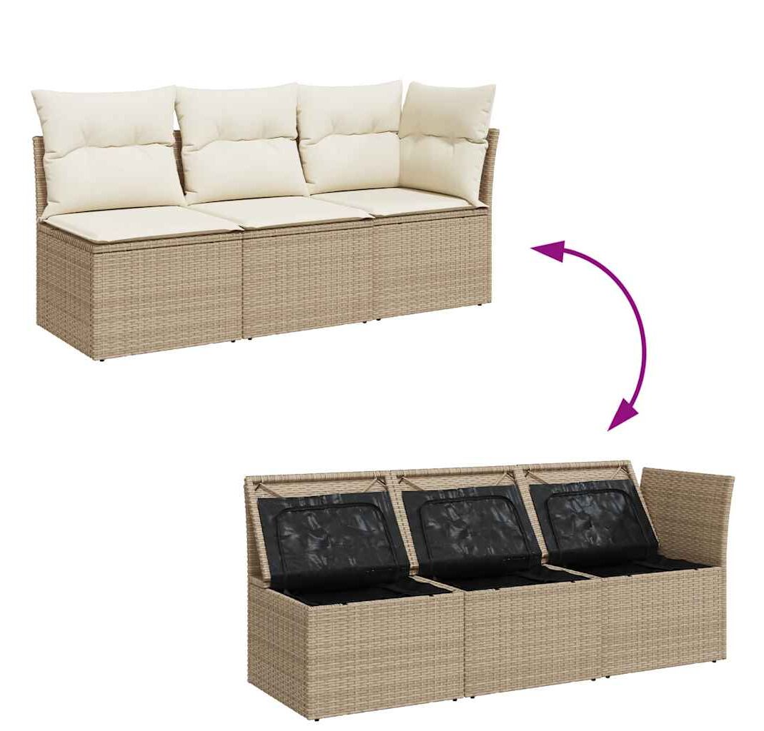 - Funcție de depozitare cu sac rezistent la apă: Fiecare scaun de grădină are spațiu de depozitare sub șezut, fiind complet datorită unui sac rezistent la apă pentru depozitarea pernelor, jucăriilor și a altor articole. Sacii interiori au o husă superioară și pot fi prinși în siguranță de scaune cu elemente de fixare cu bandă adezivă cu arici, pentru o stabilitate sporită.