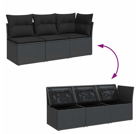 - Funcție de depozitare cu sac rezistent la apă: Fiecare scaun de grădină are spațiu de depozitare sub șezut, fiind complet datorită unui sac rezistent la apă pentru depozitarea pernelor, jucăriilor și a altor articole. Sacii interiori au o husă superioară și pot fi prinși în siguranță de scaune cu elemente de fixare cu bandă adezivă cu arici, pentru o stabilitate sporită.