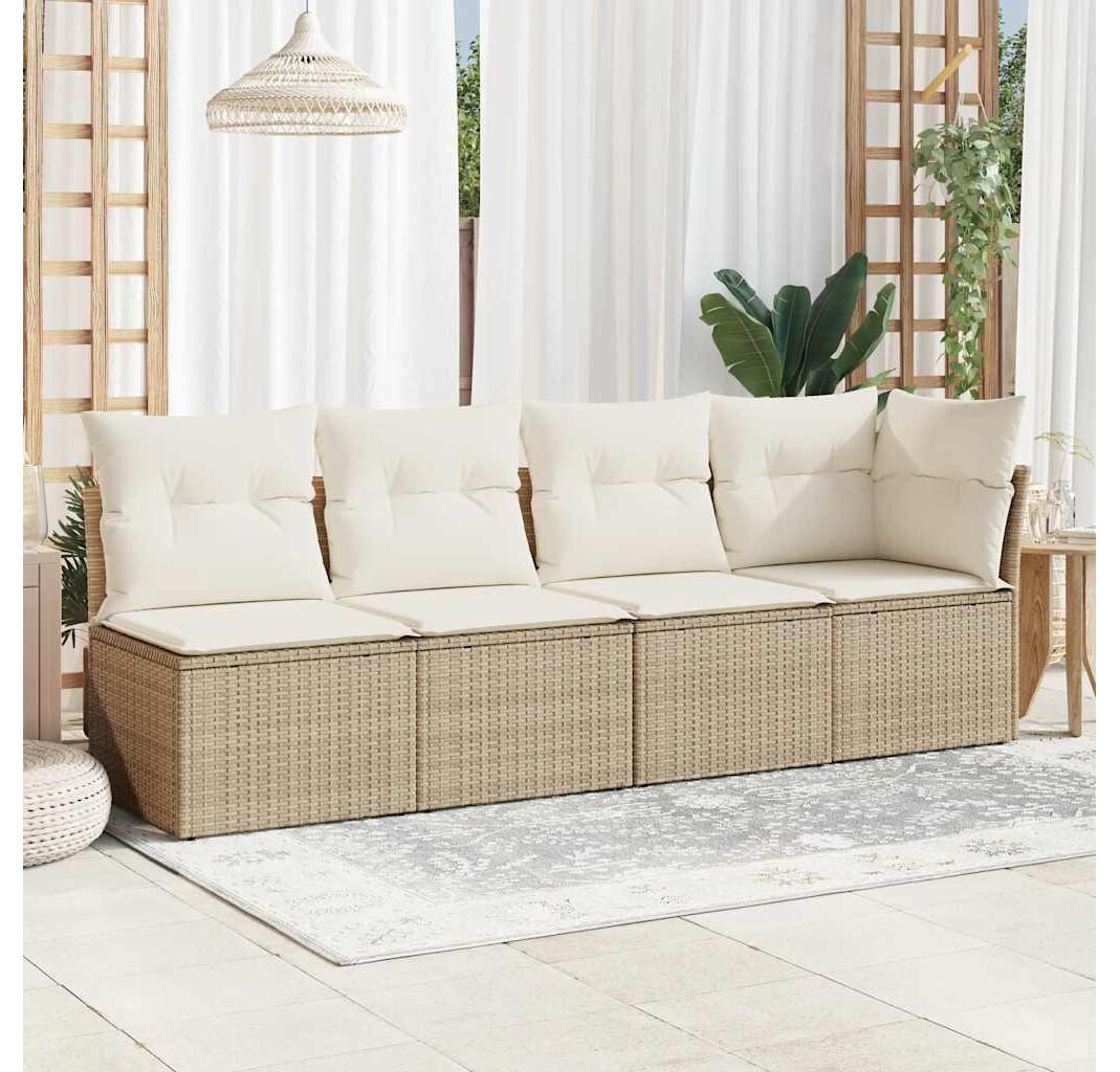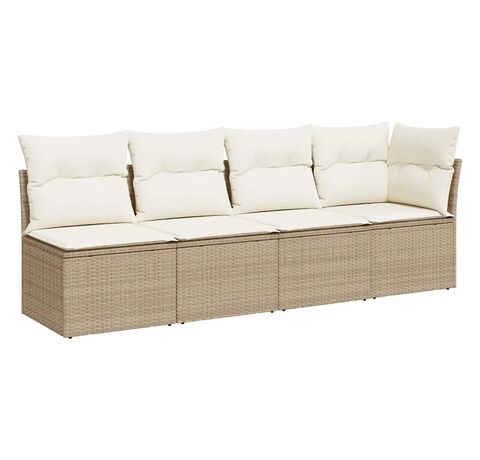 Canapea de grădină cu perne, 4 locuri, bej, poliratan