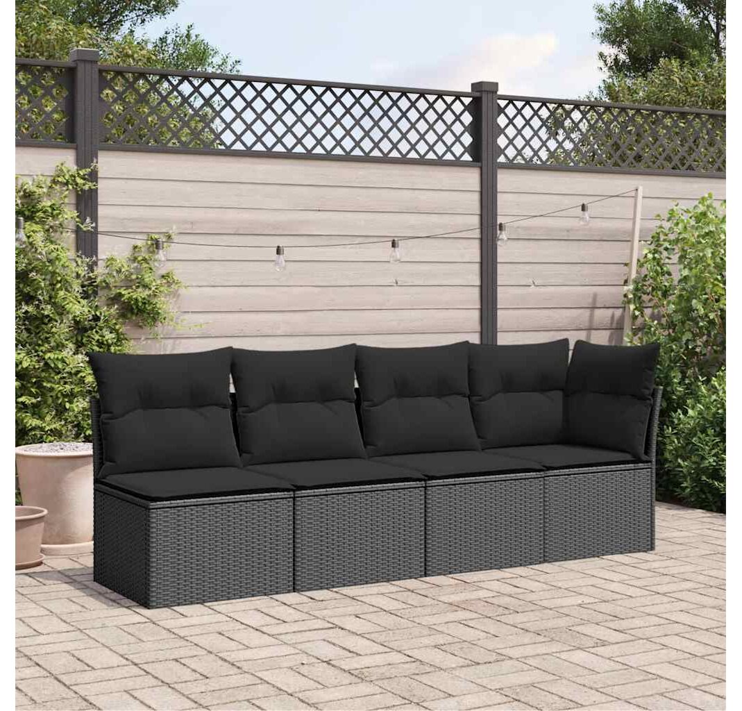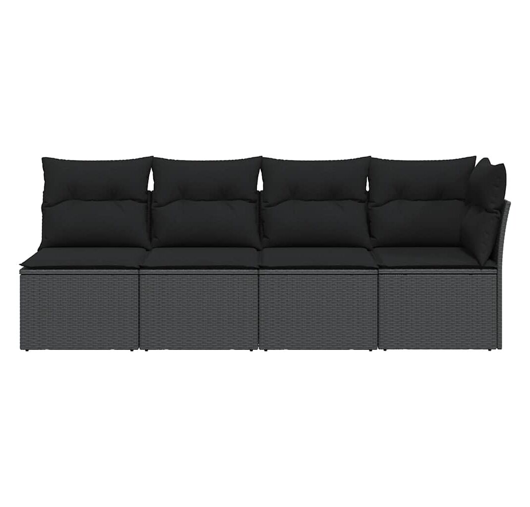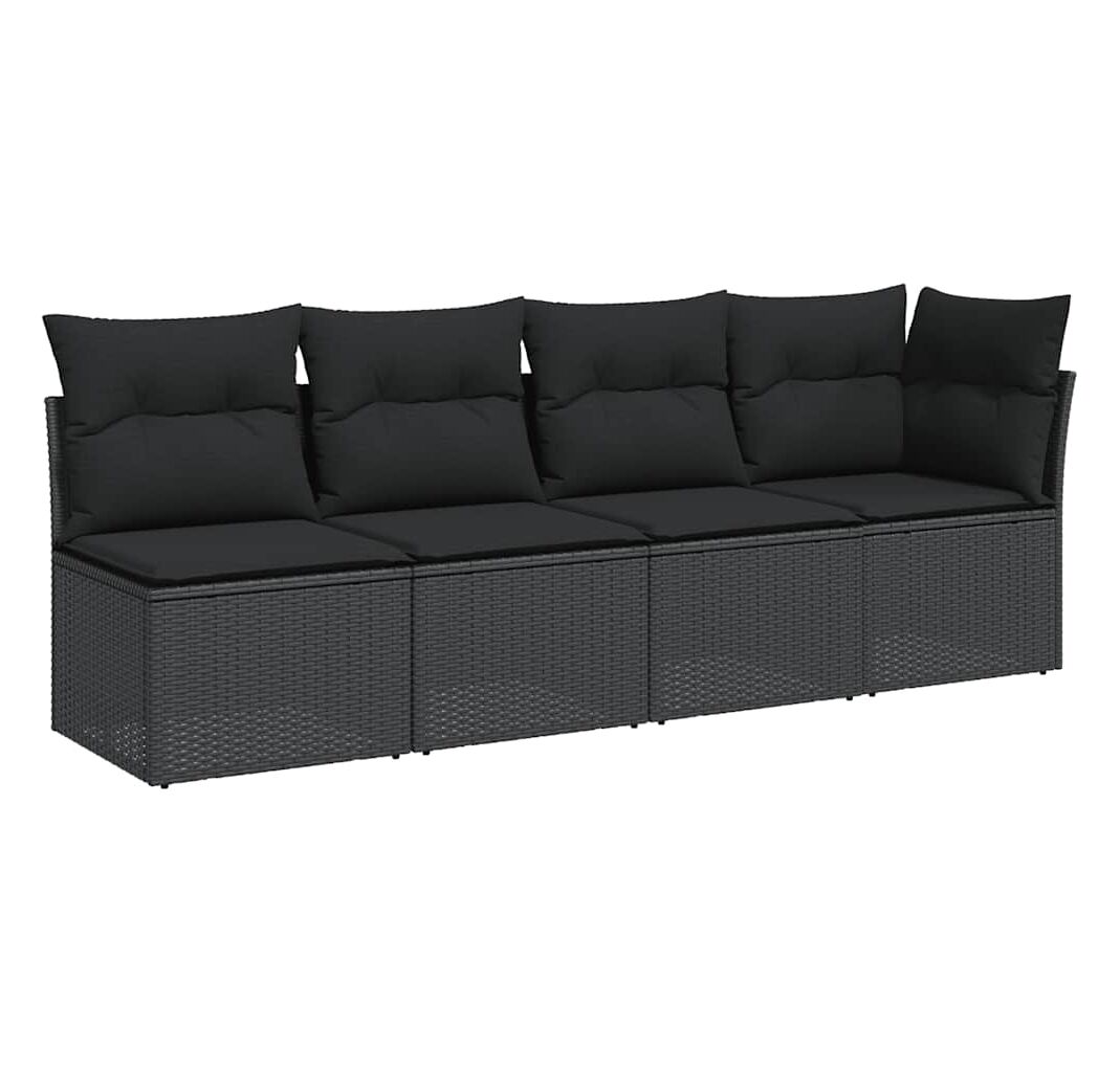 Canapea de grădină cu perne, 4 locuri, negru, poliratan