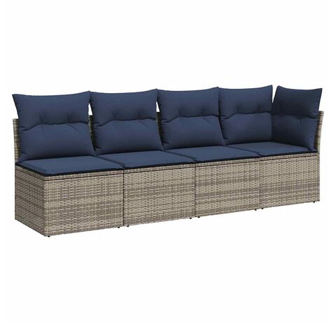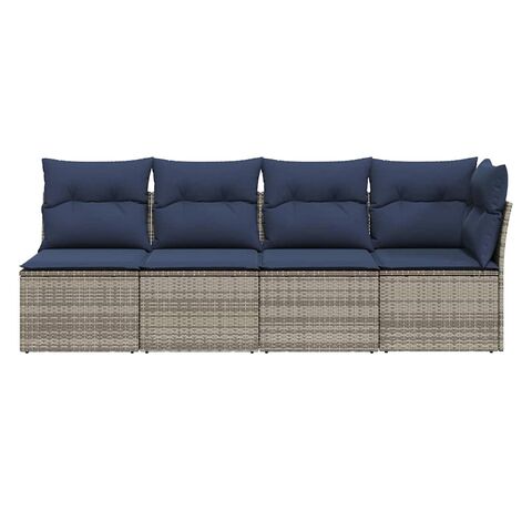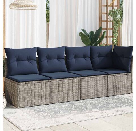 Canapea de grădină cu perne, 4 locuri, gri, poliratan