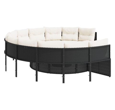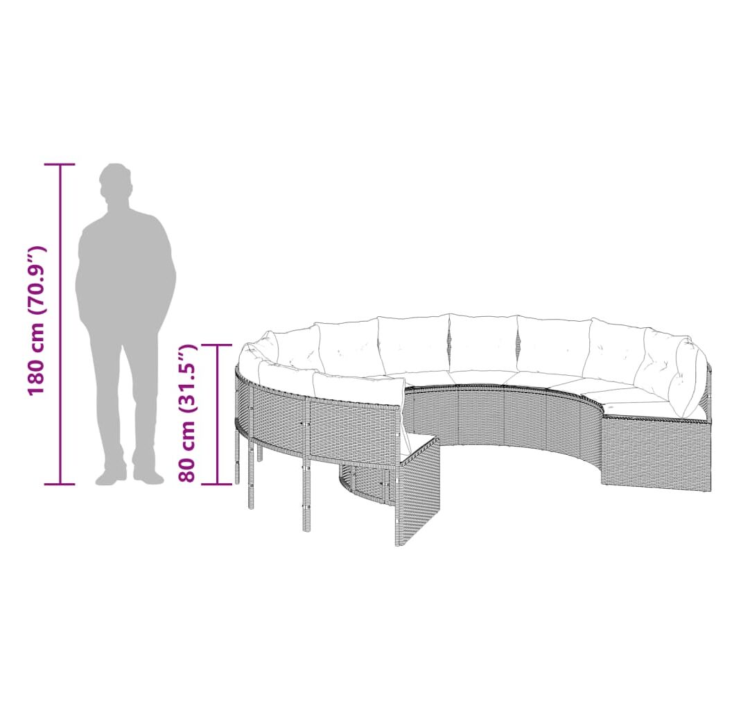 Această canapea de grădină, în formă rotundă, este completarea perfectă pentru grădina, terasa sau curtea dvs., oferind un spațiu confortabil și primitor pentru a discuta cu familia și prietenii sau pur și simplu pentru a vă relaxa și a vă bucura de aer liber.
