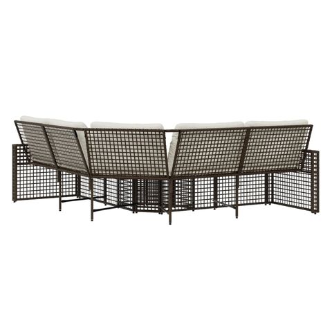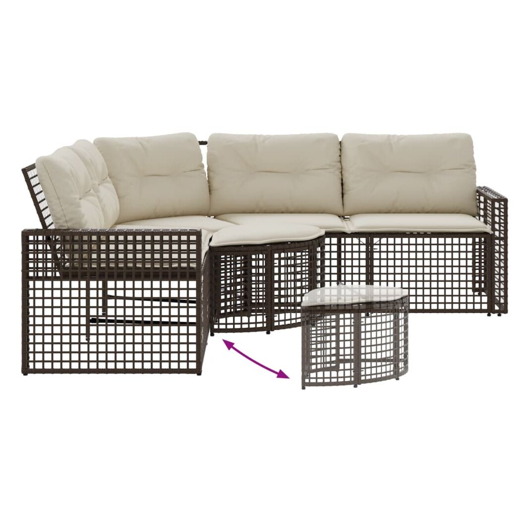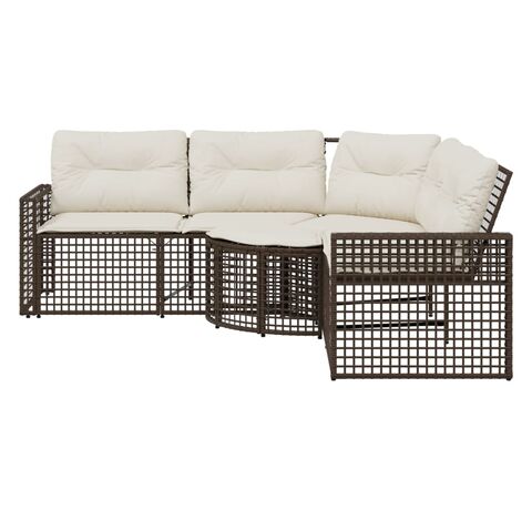Canapea de grădină cu perne/taburet, formă L, maro, poliratan