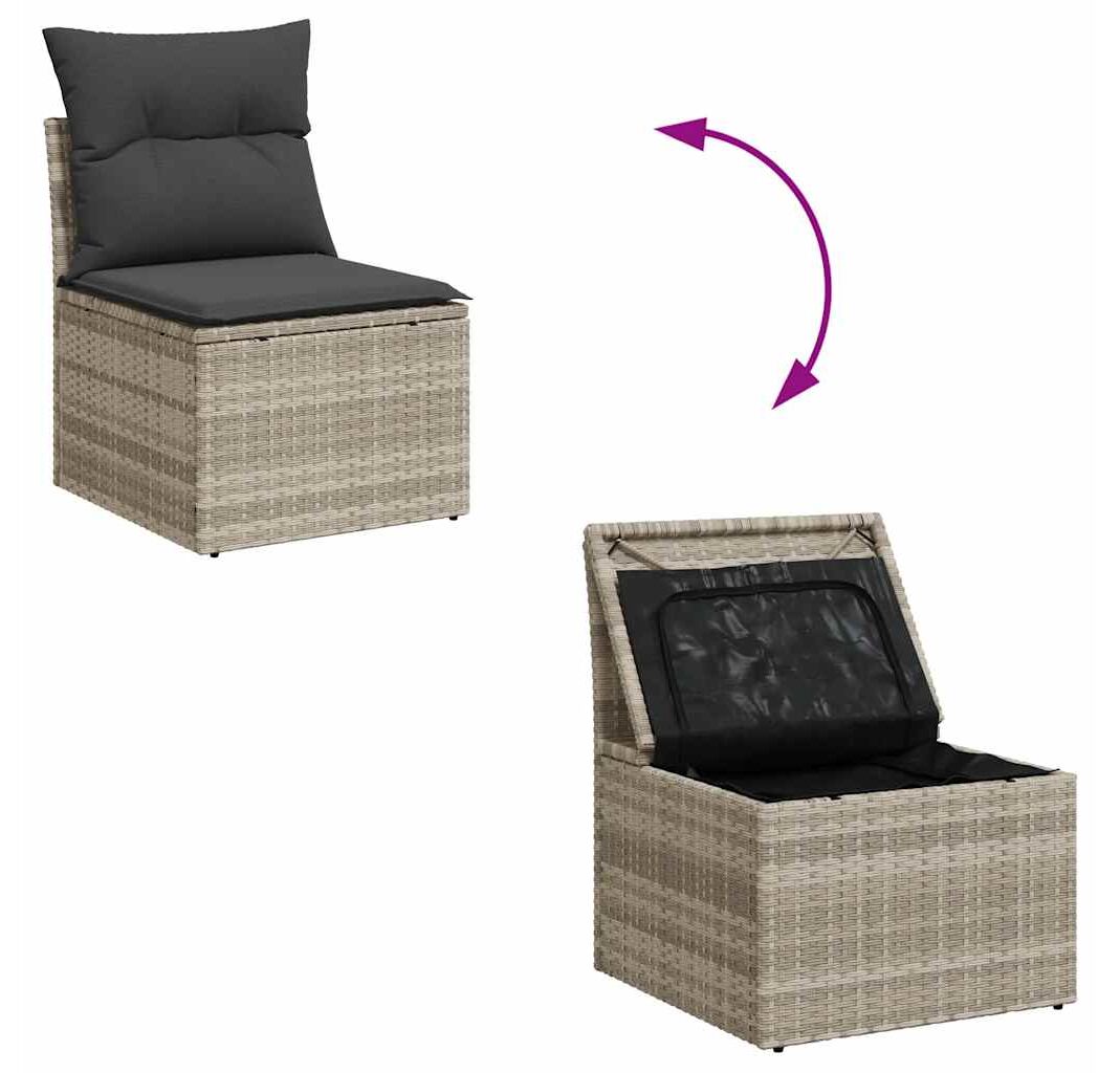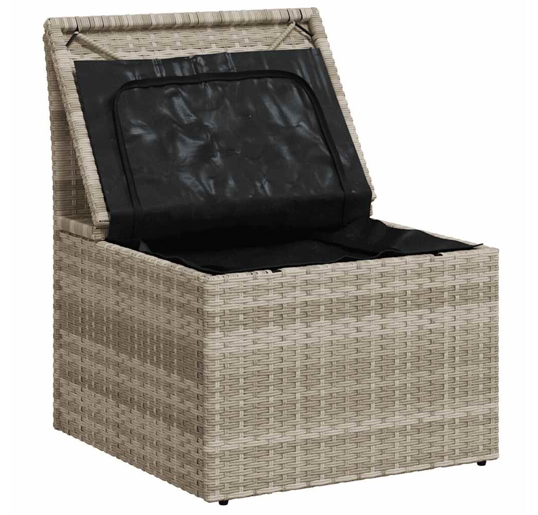 - Funcție de depozitare cu sac rezistent la apă: Fiecare scaun de grădină are spațiu de depozitare sub șezut, fiind complet datorită unui sac rezistent la apă pentru depozitarea pernelor, jucăriilor și a altor articole. Sacul interior are o husă superioară și poate fi prins în siguranță de scaun cu elemente de fixare cu bandă adezivă cu arici, pentru o stabilitate sporită.