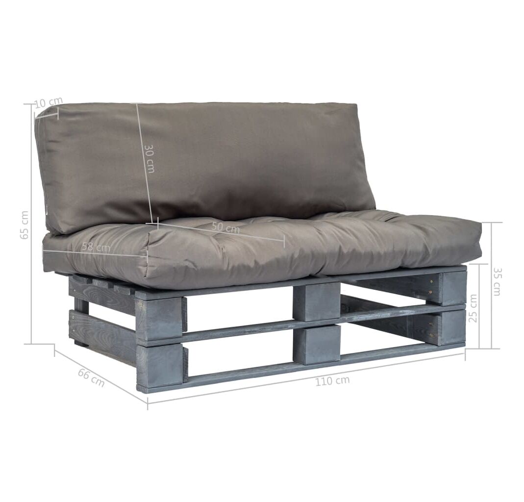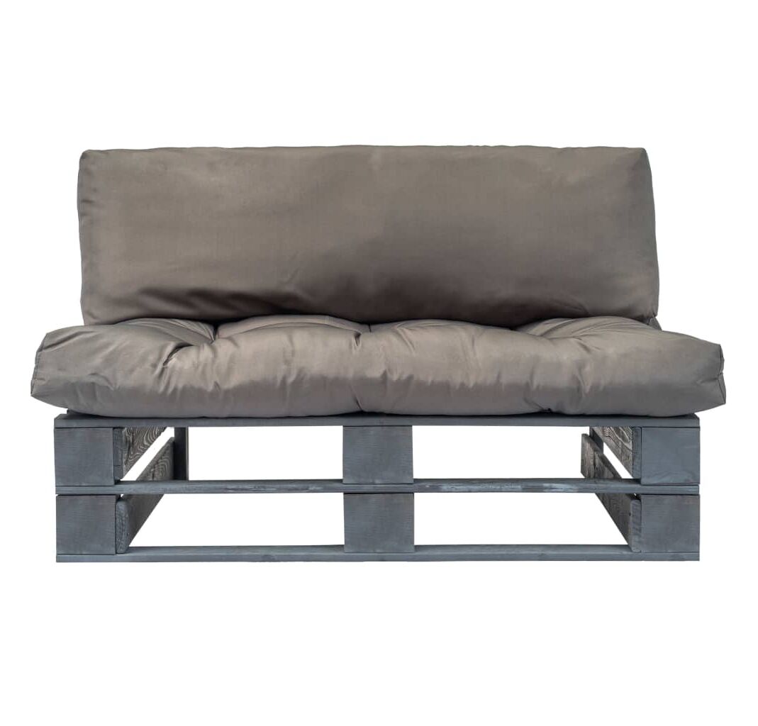 Canapea din paleți de grădină, cu perne gri, lemn de pin