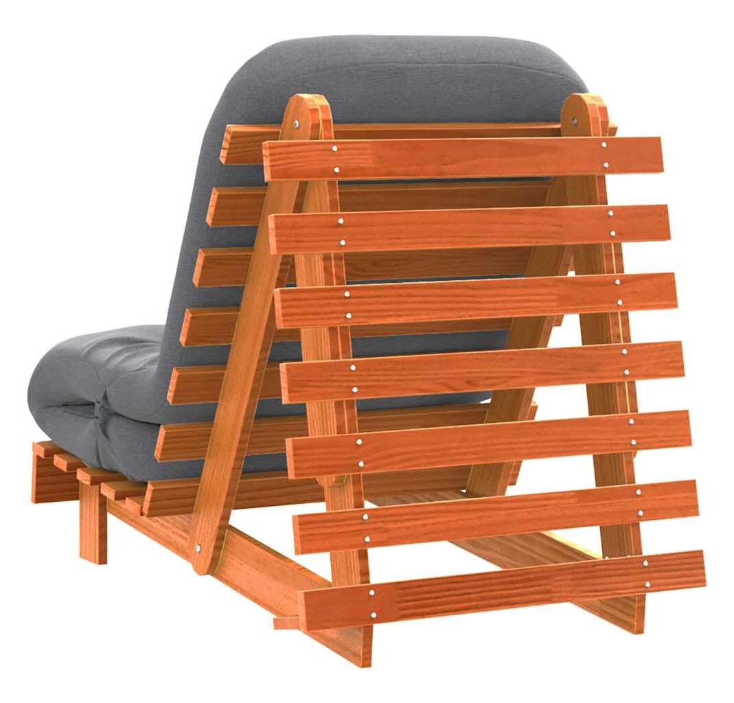 Canapea futon cu saltea, maro, 70x206x11 cm, lemn masiv de pin