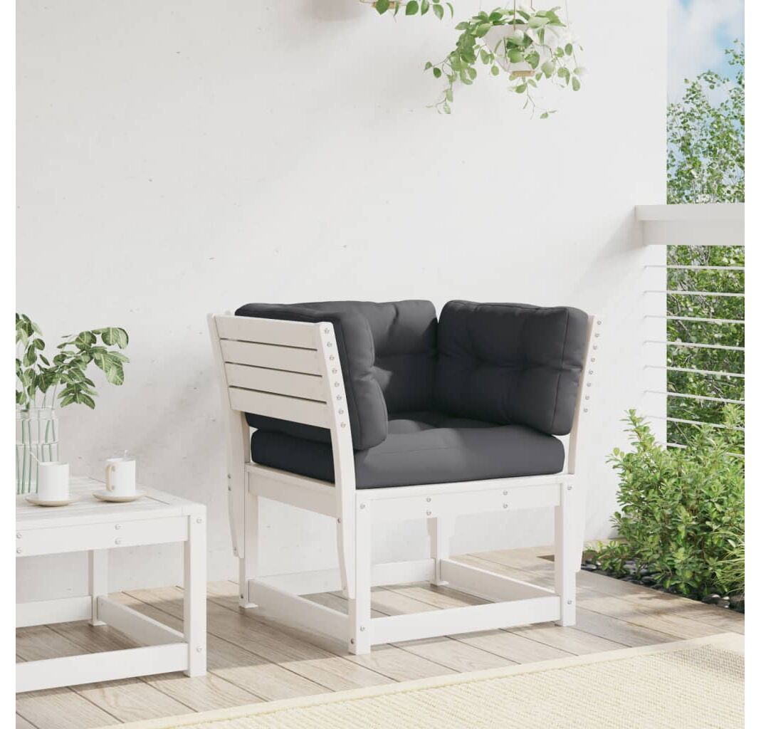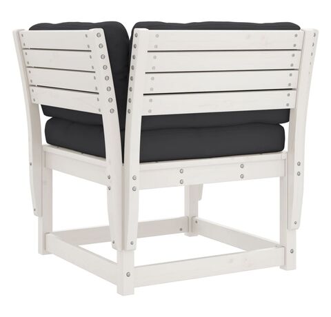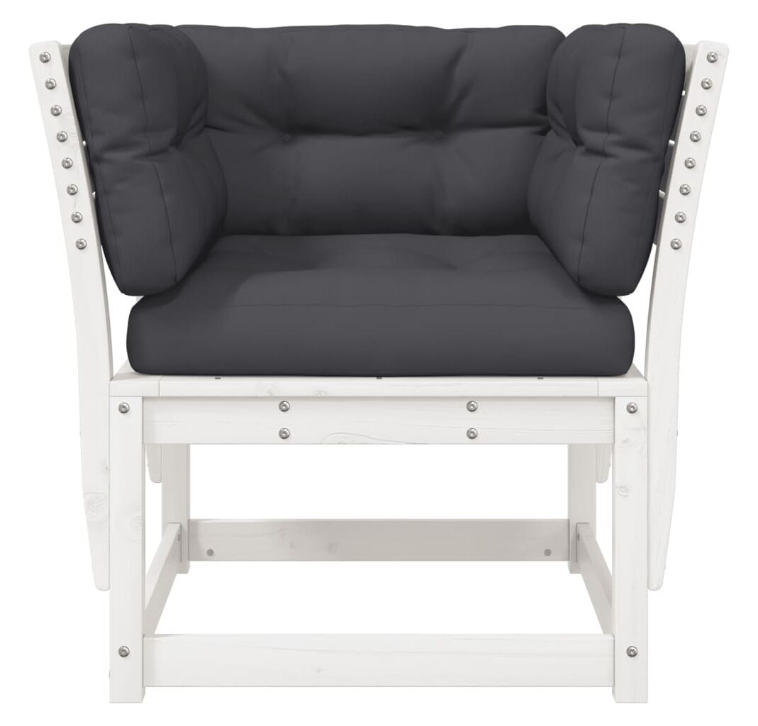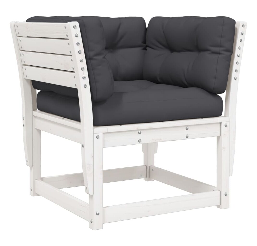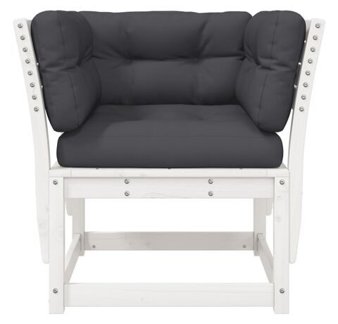 Canapea grădină cotieră cu perne, alb, lemn masiv de pin