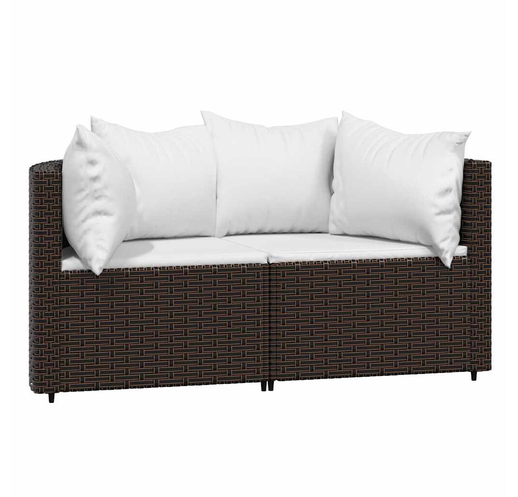 Canapele de colț de grădină cu perne, 2 buc., maro, poliratan