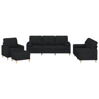 Canapea cu 3 locuri și taburet, negru, 210 cm, textil