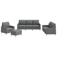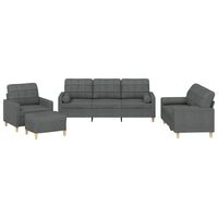 Set de canapele cu perne, 4 piese, gri închis, material textil