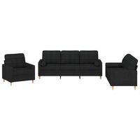 Set de canapele cu perne, 3 piese, gri închis, textil