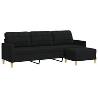 Canapea cu 3 locuri cu taburet, negru, 180 cm, material textil