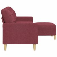 Canapea cu 3 locuri și taburet, roșu vin, 210 cm, textil