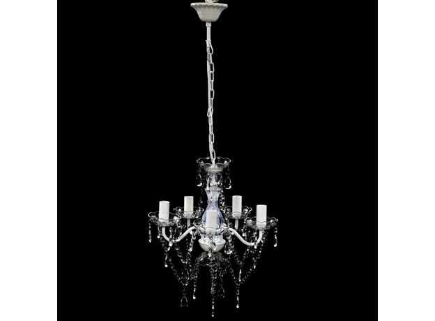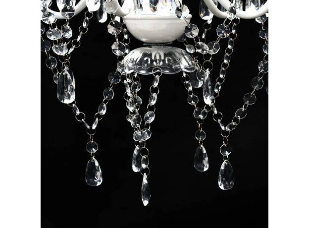 Acest candelabru de plafon din cristale de sticlă artificială este un punct de atracție în orice cameră doriți. Grația sa clasică vă pune în valoare camera de zi, dormitorul sau sufrageria.