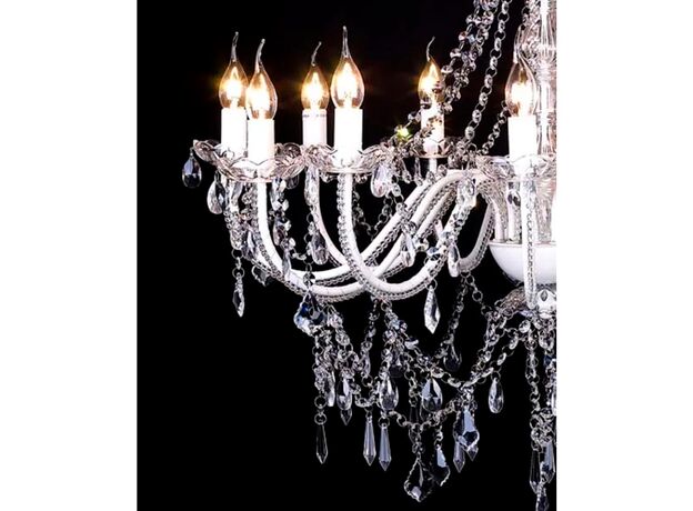 Acest minuntat candelabru cu 1600 cristale diferite și 12 brațe, este conceput în totalitate din metal si cristal de sticla (fara componente de plastic ieftine) oferind un design unic și clasic. Coloristica de calitate oferă claritate superioară și strălucire, și totodată oferind un magnific joc de culori. Atrage cu adevarat toate privirile în orice imprejurare, fiind destinat diferitelor petreceri private.