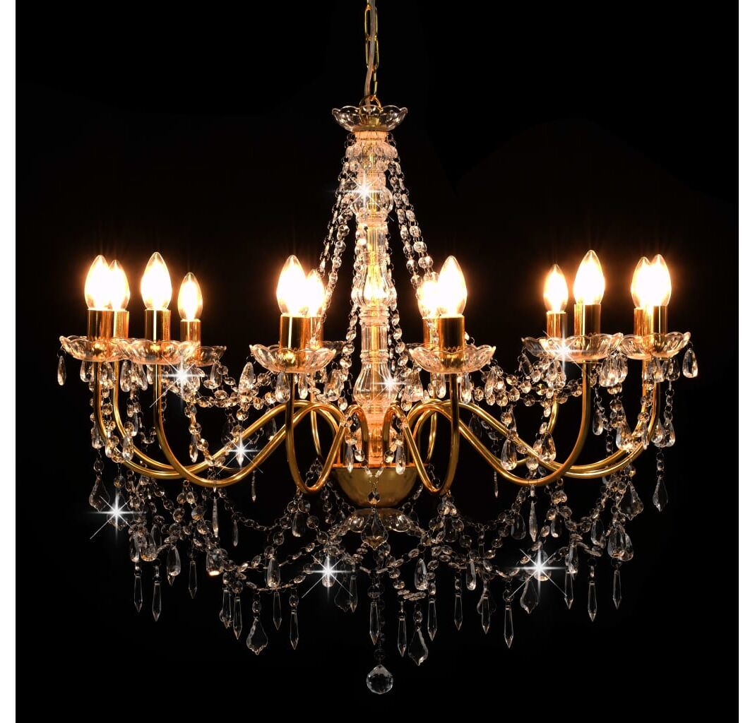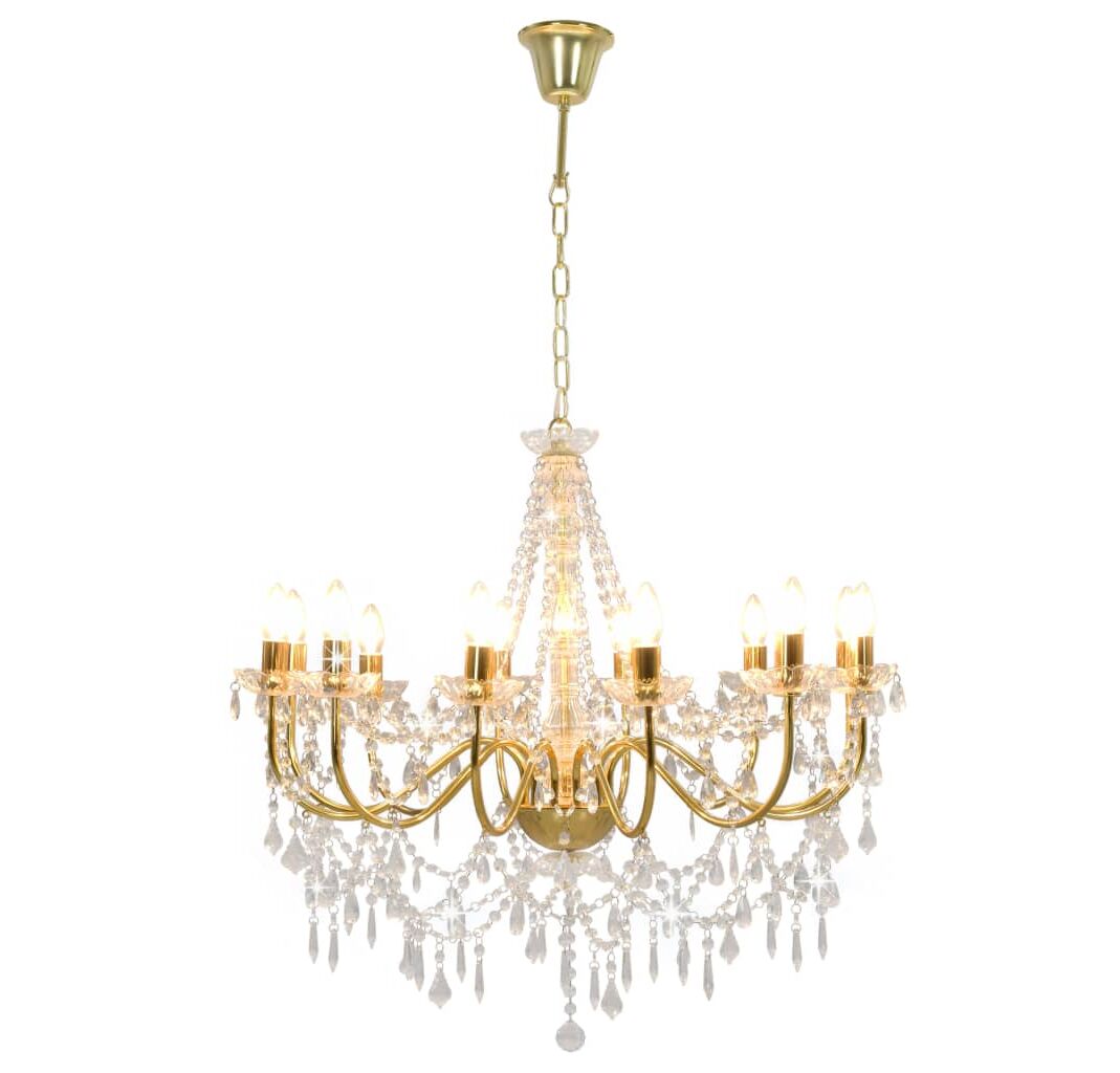 - Culoare: Auriu (bază lustră) + transparent (mărgele)