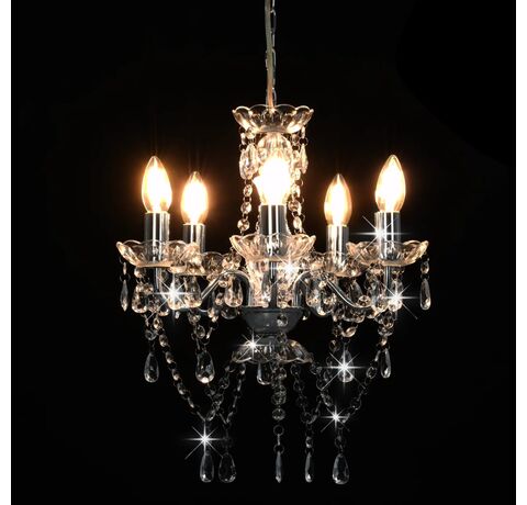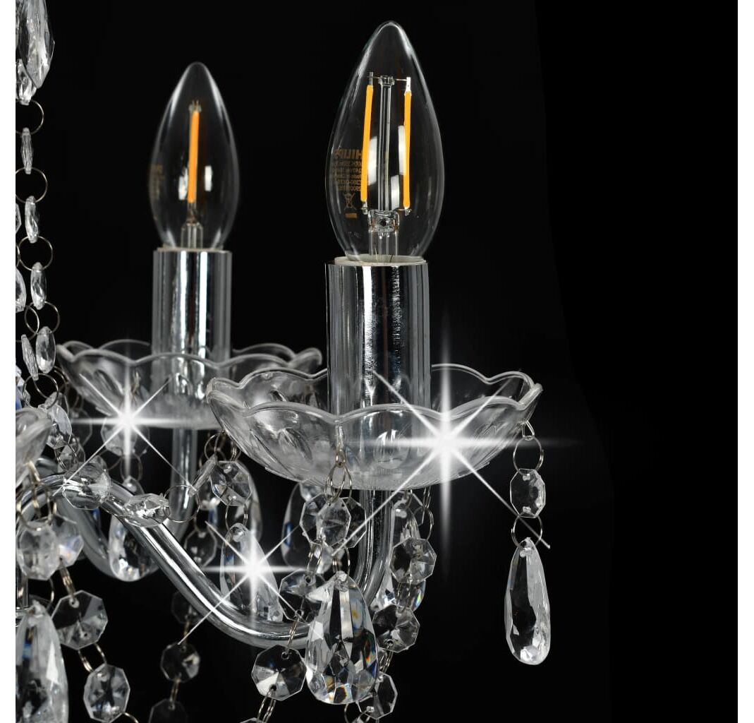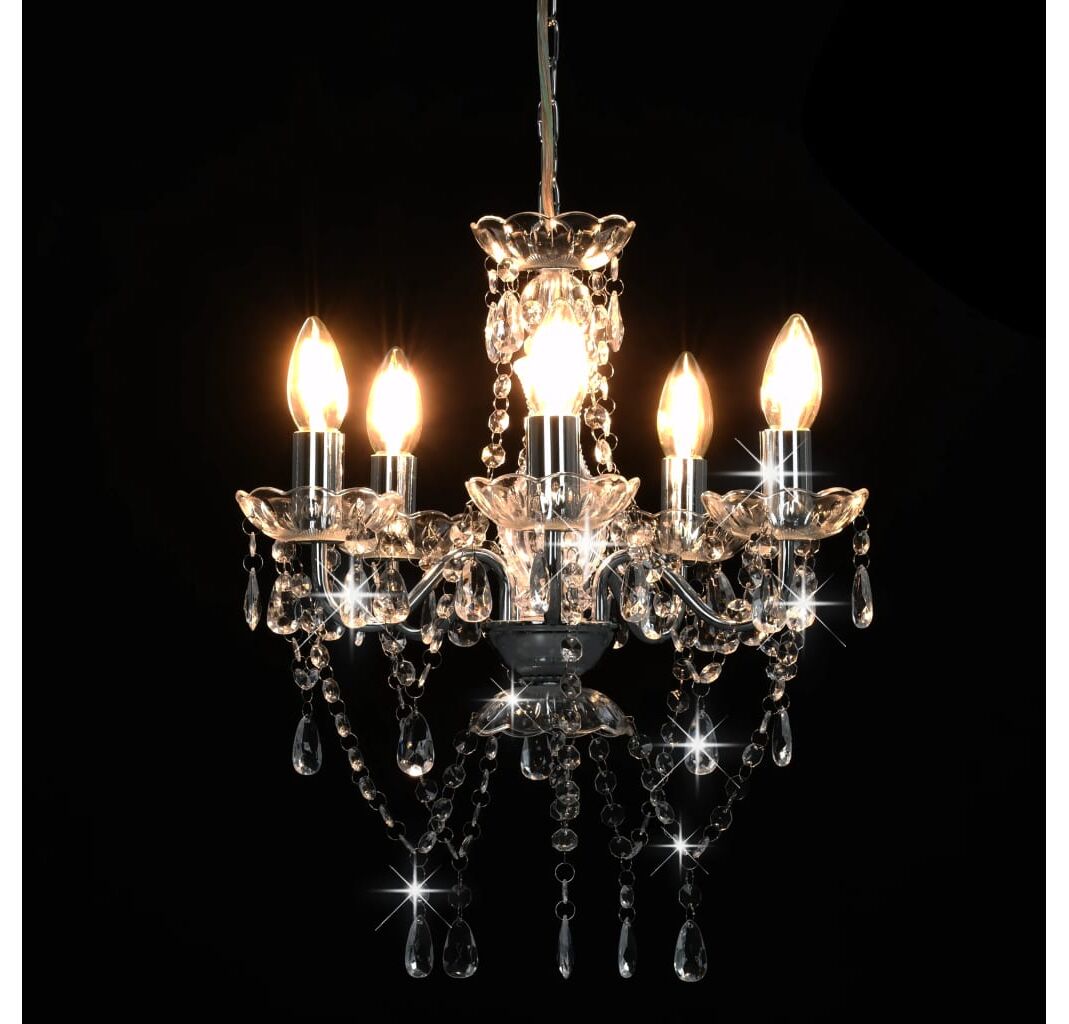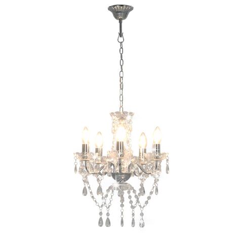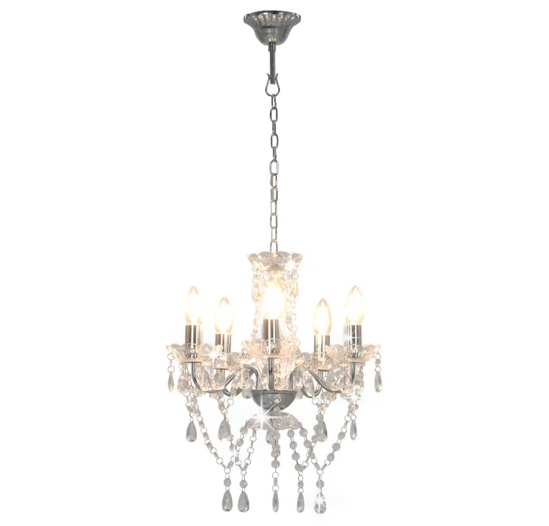 Cantitatea minima pentru "Candelabru cu mărgele de cristal, argintiu, rotund, 5 x E14" este 1.