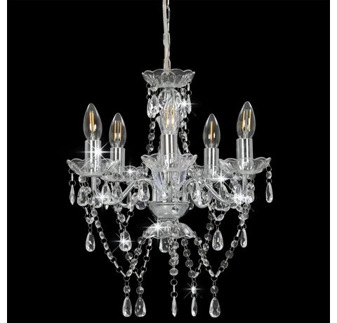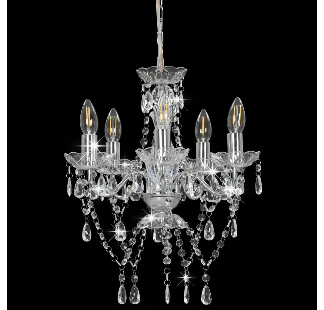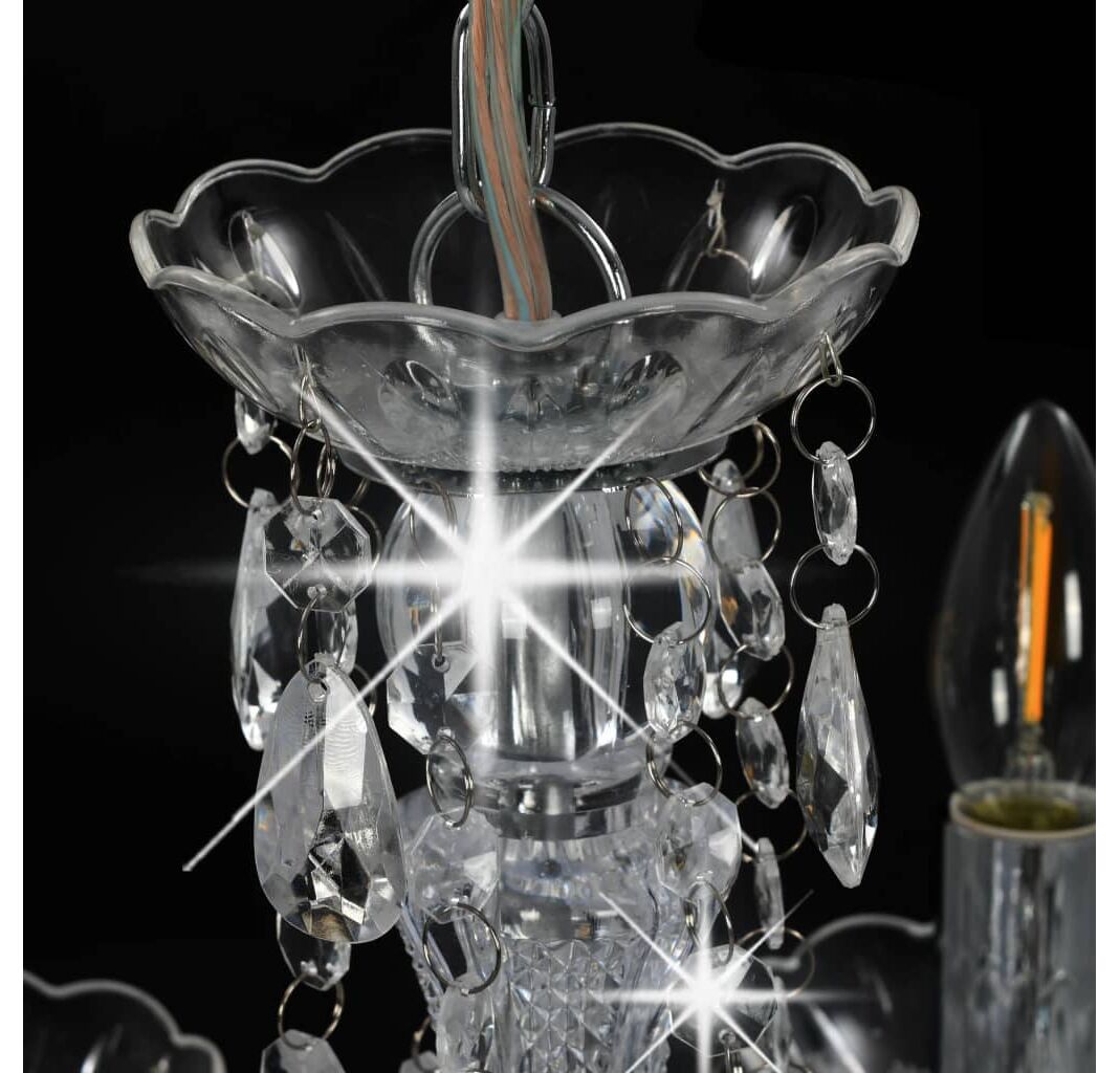 Mărgelele transparente și cadrul cu 5 brațe aduc un farmec elegant și asigură o iluminare optimă. Puteți alege și instala becuri E14 cu diverse culori deschise, creând o atmosferă de relaxare și odihnă.