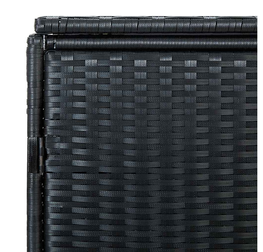 Magazia de depozitare are un capac care poate fi deschis, pentru acces facil la pubele, atunci când depozitați gunoiul. Are două uși cu deschidere individuală, cu sisteme de încuiere în față, astfel încât pubelele să poată fi ușor îndepărtate și golite. Magazia pentru pubele este fabricată din ratan PE de calitate superioară, fiind robustă, durabilă, impermeabilă și rezistentă la putrezire. În magazia de depozitare pot fi depozitate 2 pubele de gunoi cu roți, fiind ideală pentru orice grădină.