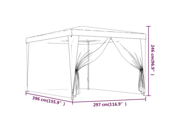 Cort de petrecere cu 4 pereți din plasă, antracit, 3x4 m, HDPE