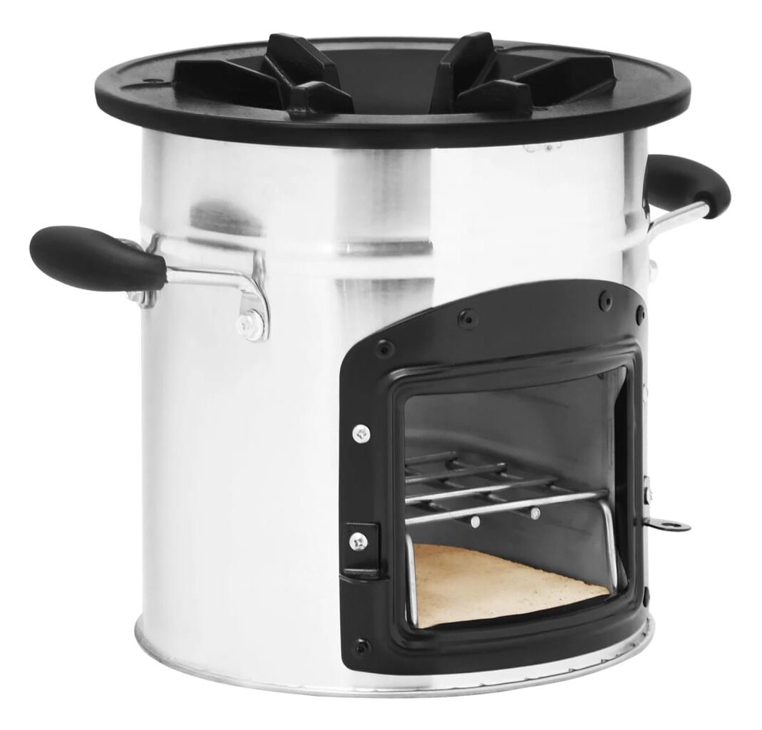 Acest aragaz cu lemne pentru camping, servește ca ustensilă de gătit atunci când aveți activități în aer liber, creând în același timp un plus de căldură și o atmosferă confortabilă când devine mai frig.