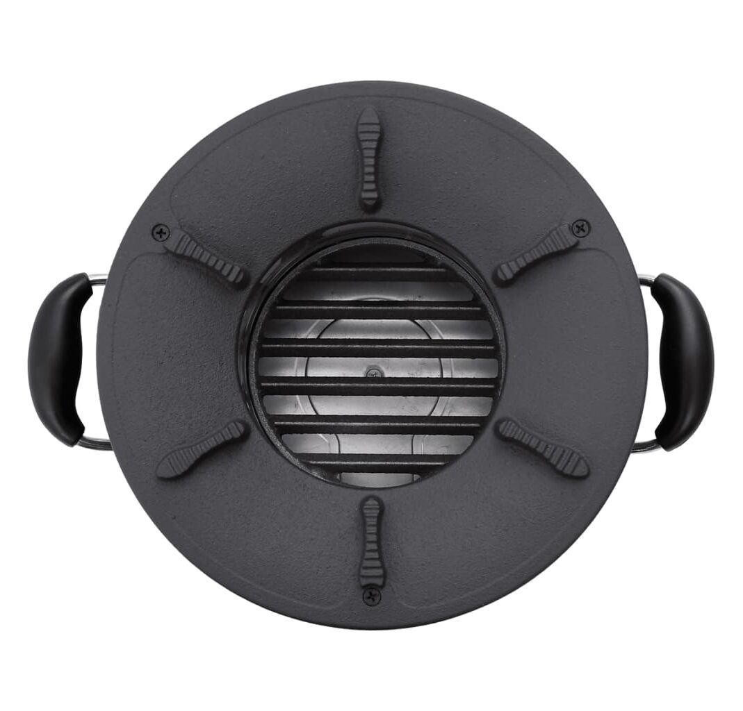 - Vatră din fontă: Șemineul dispune de un cadru de vatră durabil, din fontă, cu șase dinți. Designul cu profil redus reduce riscul de ciobire și poate suporta o varietate de vase, pentru a se potrivi tuturor nevoilor dumneavoastră de gătit în aer liber.