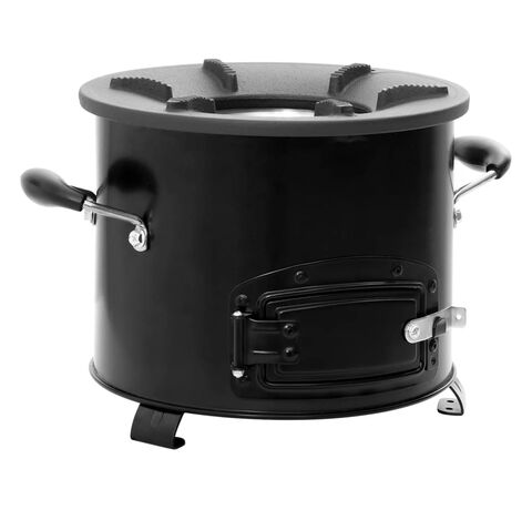 Acest aragaz cu lemne pentru camping, servește ca ustensilă de gătit atunci când aveți activități în aer liber, creând în același timp un plus de căldură și o atmosferă confortabilă când devine mai frig.