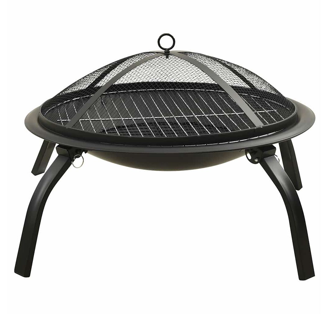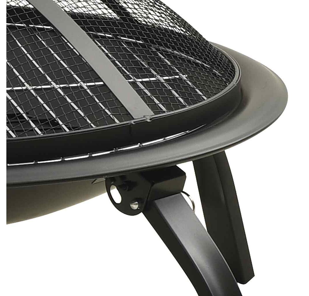 Vasul pentru foc, fabricat din oțel, este excelent la absorbția și radierea căldurii. Acest șemineu are un bol mare, și astfel dvs. și familia vă puteți bucura ore în șir de un foc mare. Plasa vă permite să urmăriți focul aprins și îl ține împrejmuit în siguranță, pentru a preveni scânteile și deșeurile să zboare în jur. În plus, există un inel practic deasupra capacului din plasă, astfel încât să îl puteți transporta cu ușurință. Vătraiul poate fi folosit atât pentru îndepărtarea plasei, cât și pentru rearanjarea lemnelor pentru foc. Cu grilajul de gătit inclus, puteți face chiar și un grătar. În plus, picioarele pot fi pliate pentru a putea fi transportat ușor.