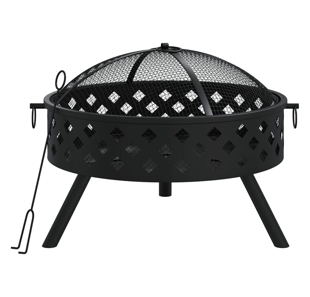 - Accesorii sigure: Plasa vă permite să urmăriți focul care arde, oferă o împrejmuire de siguranță pentru foc și, de asemenea, împiedică scânteile și reziduurile să zboare. De asemenea, vătraiul metalic inclus poate fi folosit atât pentru îndepărtarea capacului de plasă, cât și pentru rearanjarea buștenilor.