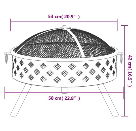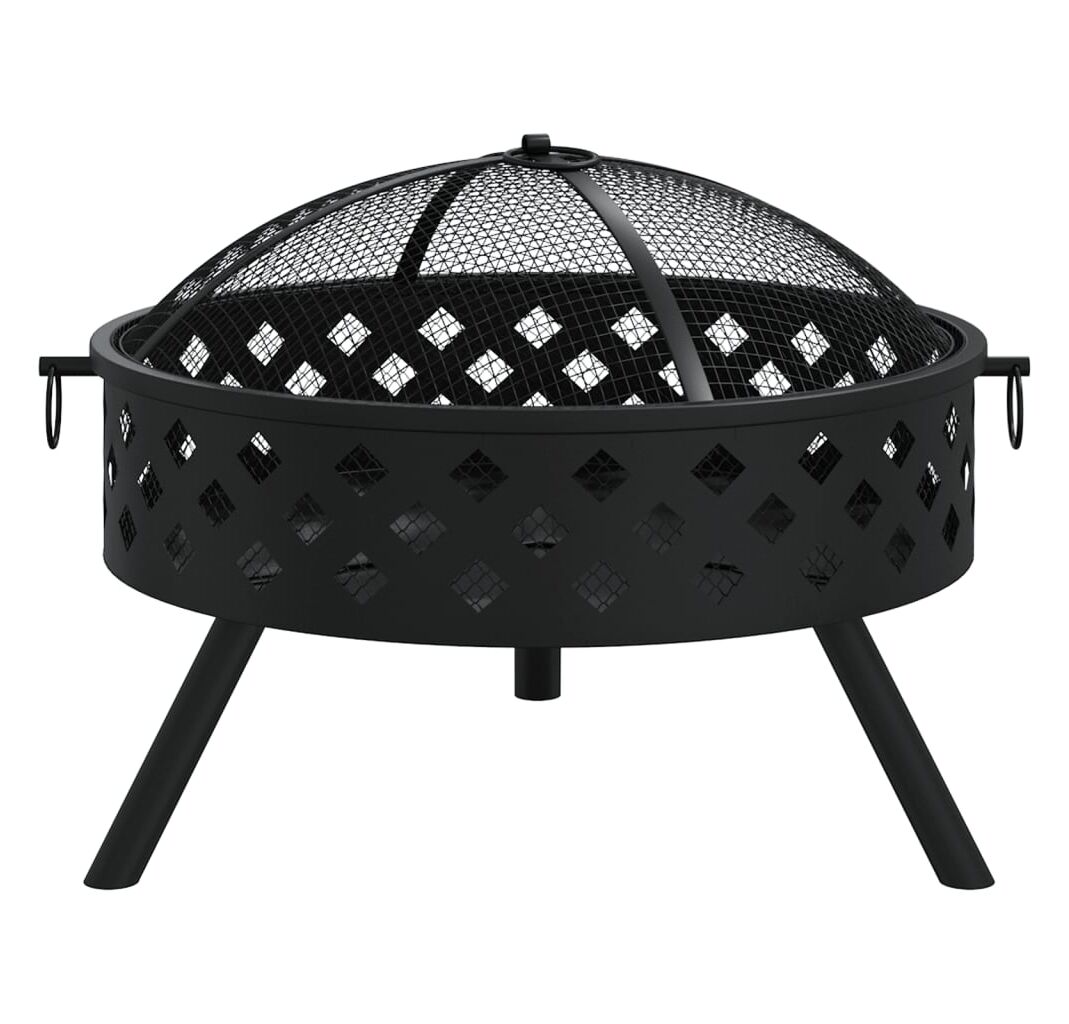 - Design practic: Dispunând de un bol mare și adânc, acest șemineu vă permite să vă bucurați ore întregi de un foc mare, împreună cu familia dvs. În plus, există un inel convenabil în capacul din plasă, astfel încât să îl puteți transporta cu ușurință.