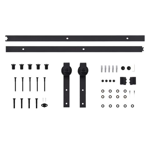 Pachetul de livrare include 2 șine glisante, 2 role, 2 opritoare de ușă, 1 ghidaj de podea, 2 mecanisme de blocare anti-salt, 5 cleme de fixare, precum și alte piese metalice necesare. Notă: Ușa nu este inclusă.