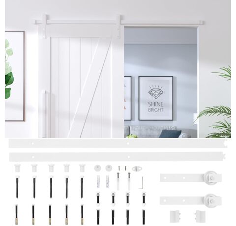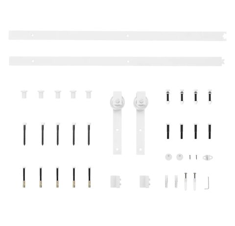 Pachetul de livrare include 2 șine glisante, 2 role, 2 opritoare de ușă, 1 ghidaj de podea, 2 mecanisme de blocare anti-salt, 5 cleme de fixare, precum și alte piese metalice necesare. Notă: Ușa nu este inclusă.