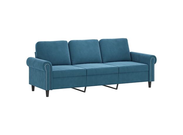 Set de canapele cu perne, 3 piese, albastru, catifea