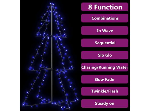 Luminile constau din 200 de LED-uri de mare putere, care sunt foarte eficiente din punct de vedere energetic și emit o lumină puternică. Este proiectat cu 8 efecte de iluminare diferite: o combinație a tuturor efectelor, strălucire lentă, sclipire/licărire, în unde, alergare/curgere de apă, secvențială, constant aprinsă și decolorare lentă. Se aprinde frumos și creează o atmosferă magică de sărbători. Va fi un adevărat punct de atracție, mai ales seara, și servește și ca o sursă confortabilă de lumină ambientală. Bradul conic independent poate fi fixat ușor și sigur de sol cu materialele de montare incluse.