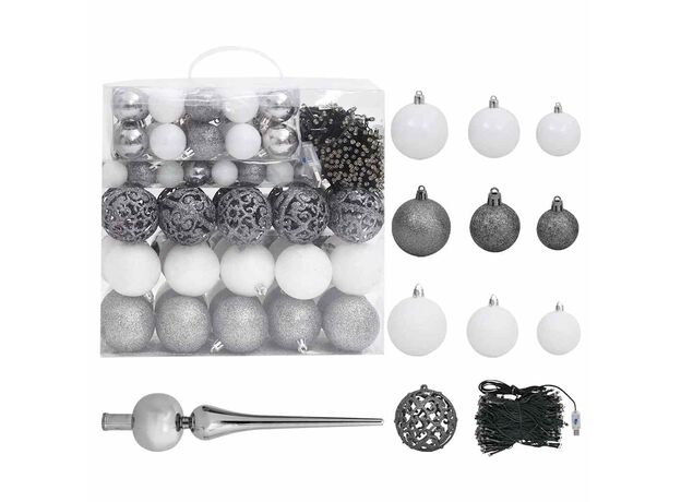 Acest frumos pom de Crăciun, realizat din material PVC, este foarte realist prin forma și aspectul său. Are ramuri foarte groase, care fac ca bradul să pară și mai realist. Toate ramurile pot fi aliniate, ceea ce vă permite să reglați pomul într-o formă perfectă. Suportul din metal inclus oferă pomului dvs. o stabilitate optimă. Pomul de Crăciun poate fi folosit din nou în fiecare an, fiind o alegere foarte economică în comparație cu un brad natural. Luminile LED, eficiente din punct de vedere energetic se aprind frumos și creează o atmosferă plăcută de sărbătoare. În plus, decorat cu vârf și globuri frumoase, acest pom de Crăciun va fi atrăgător pentru locuința dvs.