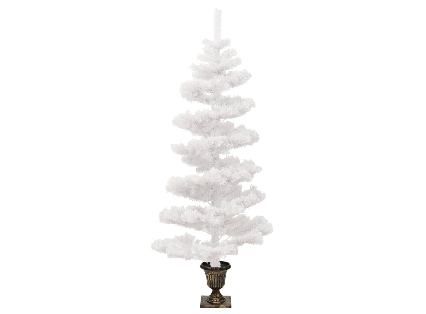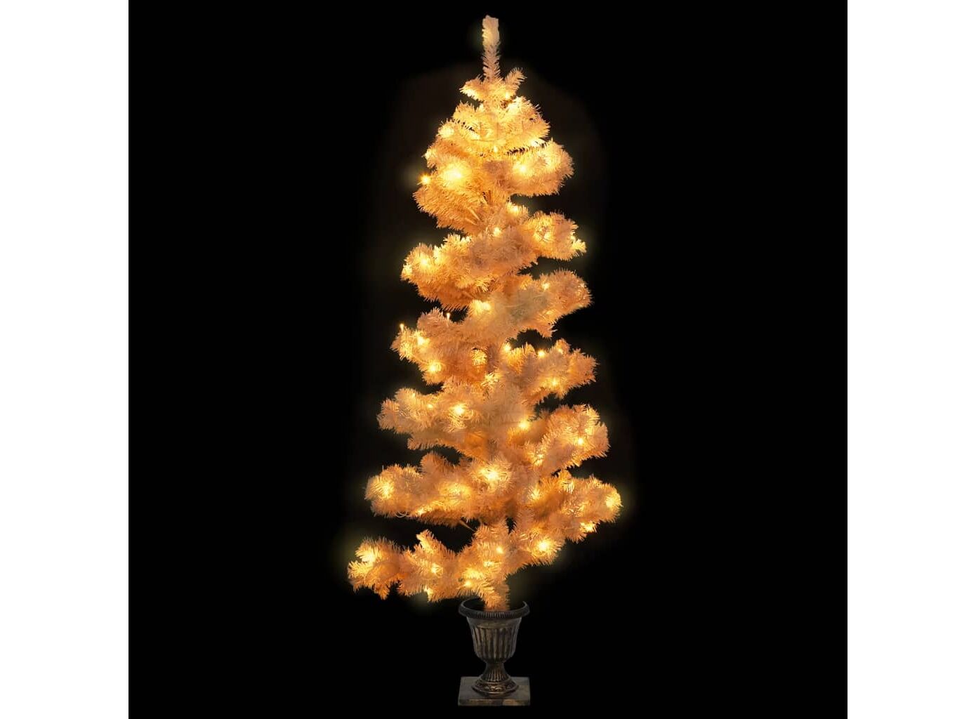 Brad Crăciun pre-iluminat ondulat cu ghiveci, alb, 120 cm, PVC