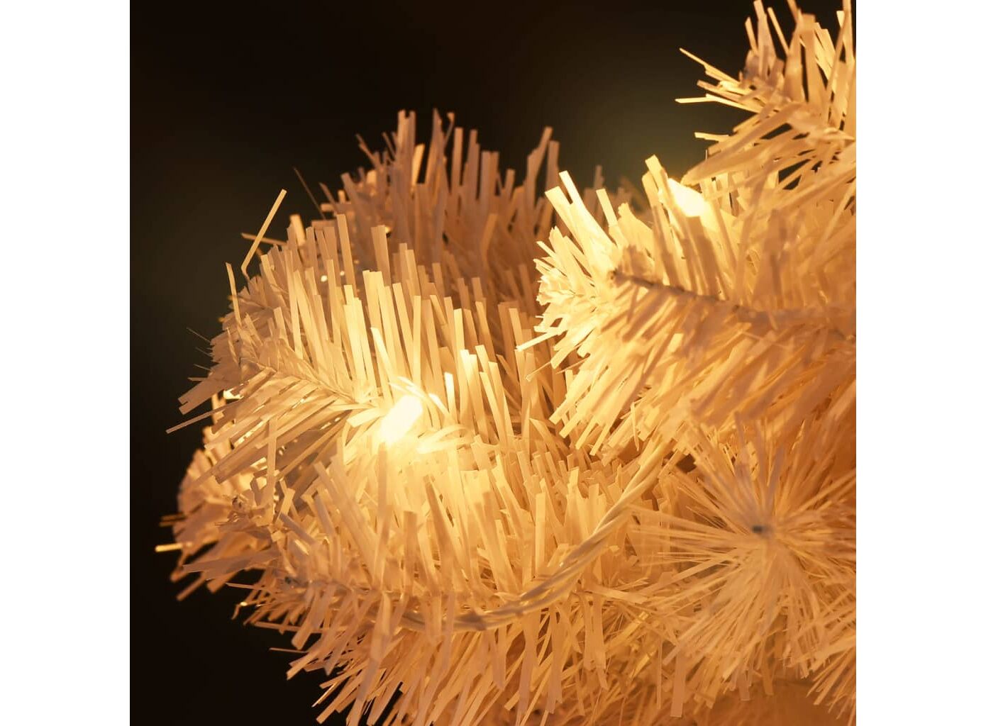 Brad Crăciun pre-iluminat ondulat cu suport, alb, 180 cm, PVC