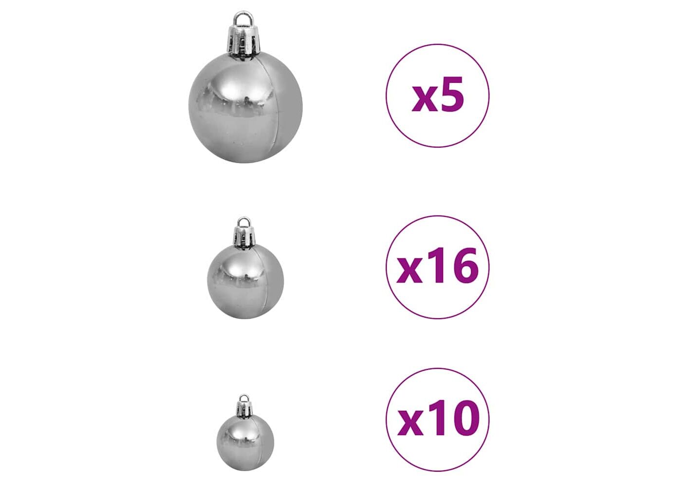 • Conținutul livrării: 1 x brad de Crăciun, 1 x suport, 1 x lumină cu fir LED, 1 x vârf, 40 x mingi de 3 cm, 40 x mingi de 4 cm, 40 x mingi de 6 cm<\li>