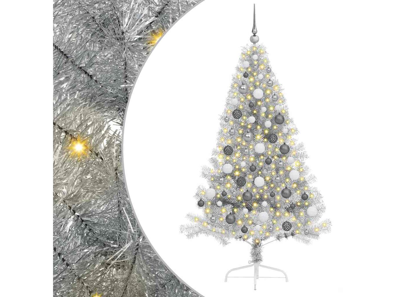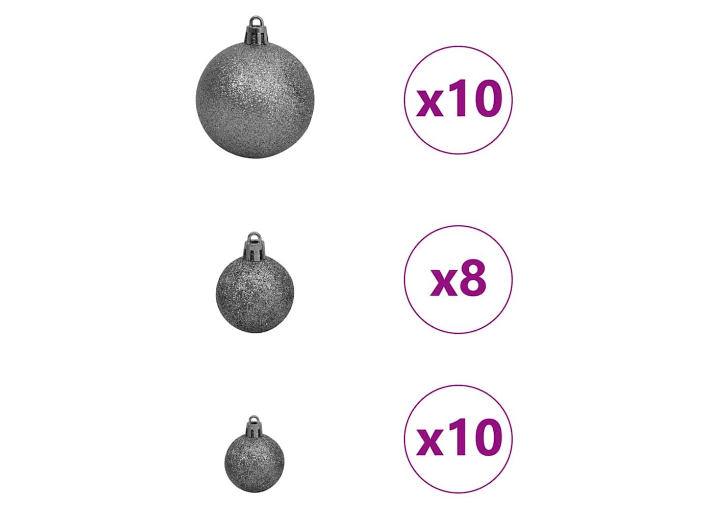 - Conținutul livrării: 1 x pom de Crăciun, 1 x suport, 1 x lumină siret LED, 1 x vârf, 40 x minge de 3 cm, 40 x minge de 4 cm, 40 x minge de 6 cm<\li>