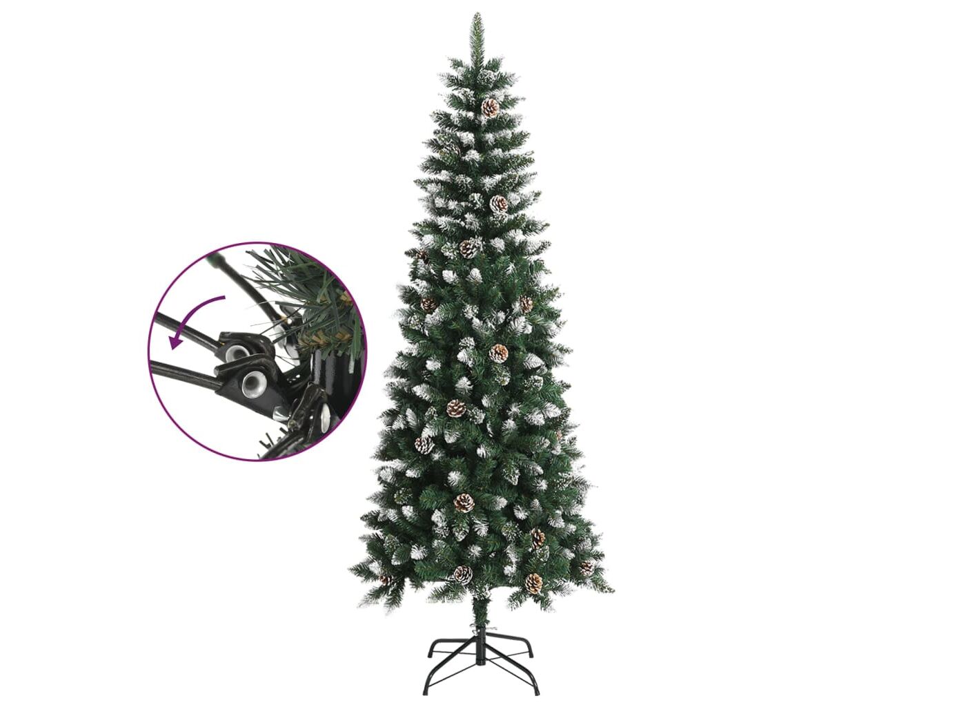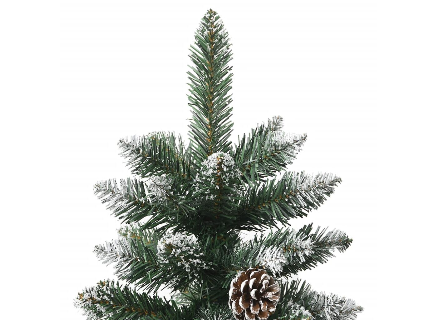 • Decor frumos: Bradul de Crăciun vine cu conuri pe el, având un efect natural frumos. Este decorat cu zăpadă albă artificială și sclipici pentru a crea o senzație unică de iarnă.