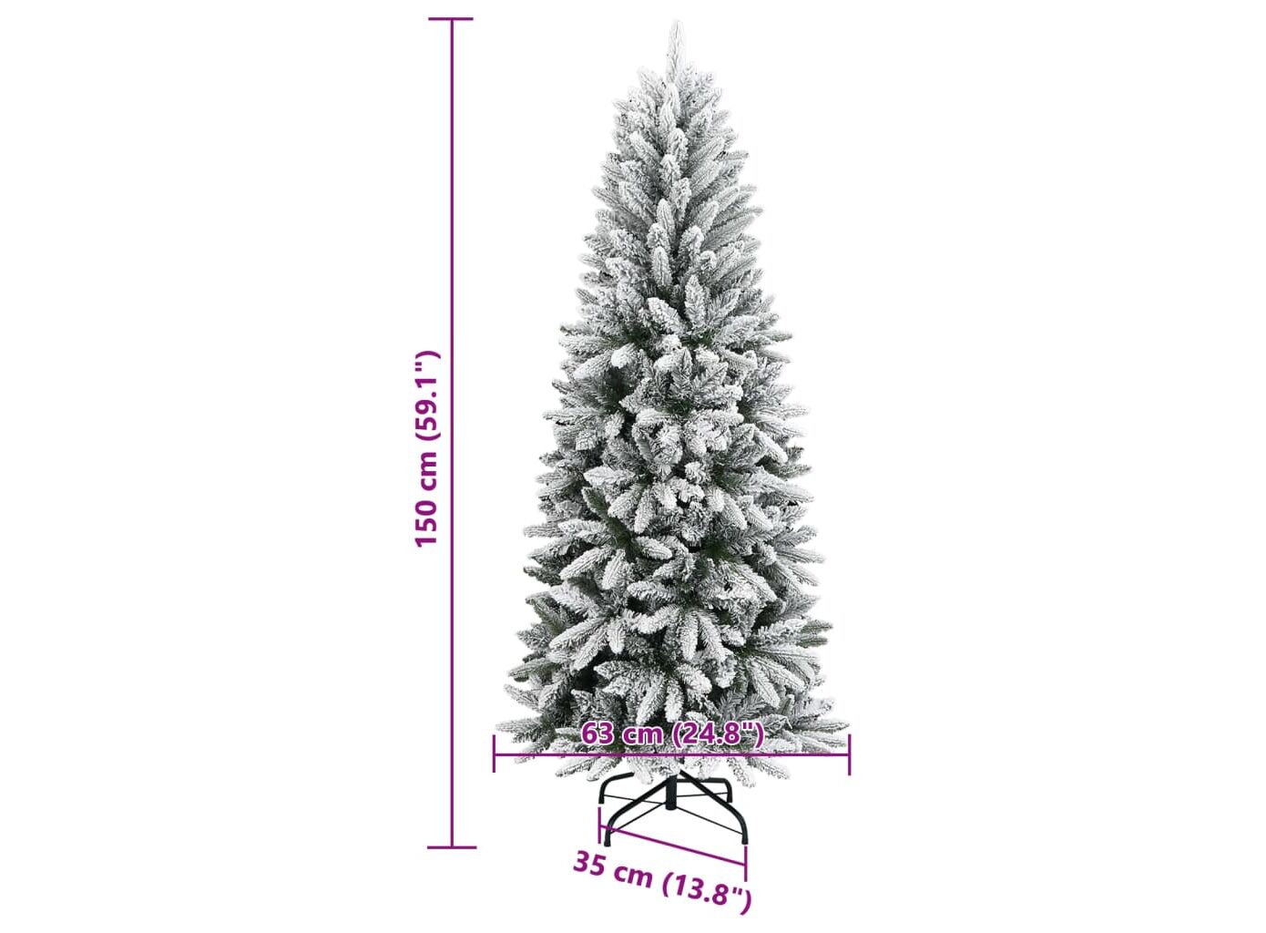 Brad de Crăciun artificial cu zăpadă pufoasă, 150 cm, PVC&PE