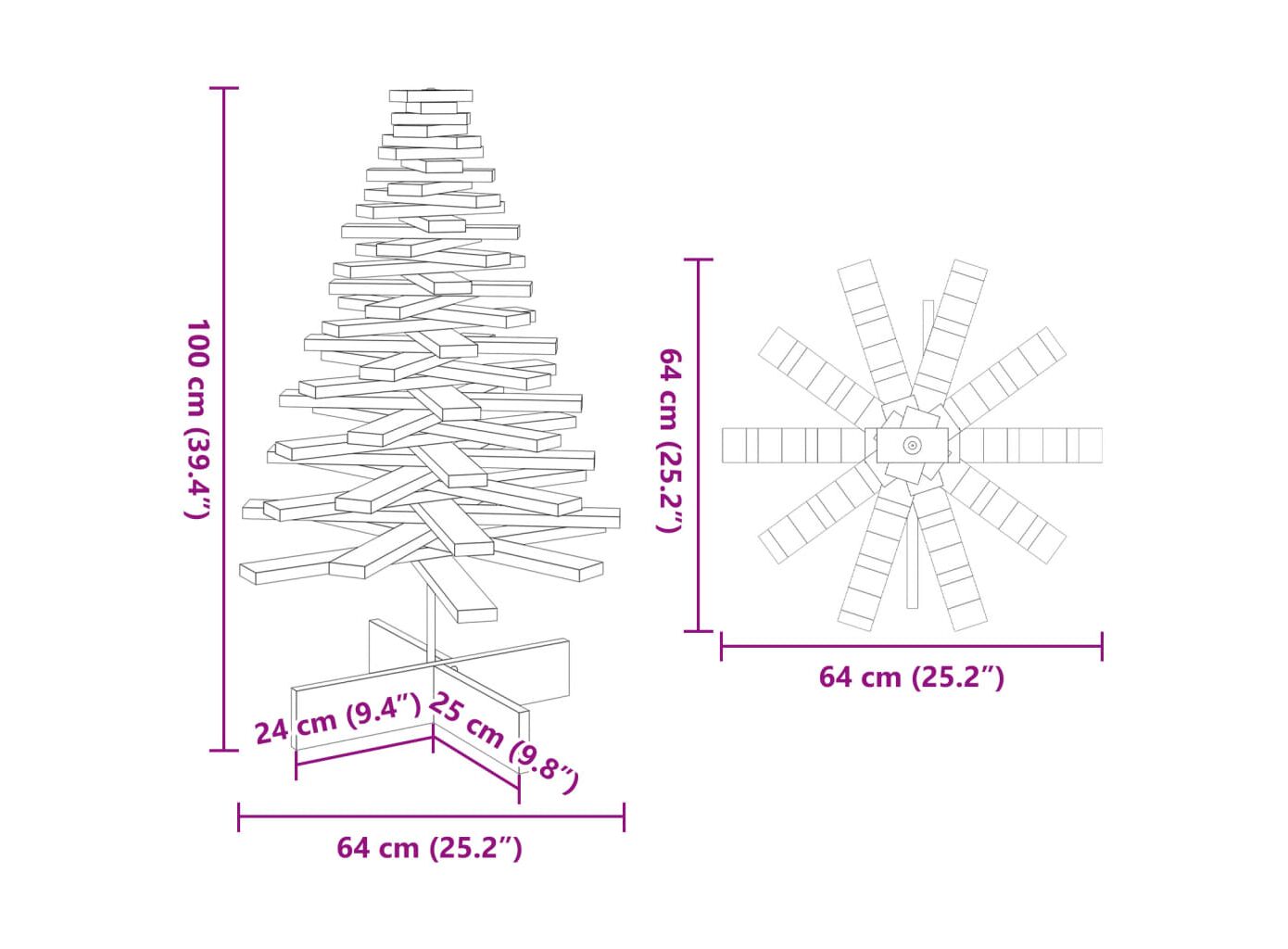 Brad de Crăciun din lemn decorativ, 100 cm, lemn de pin masiv