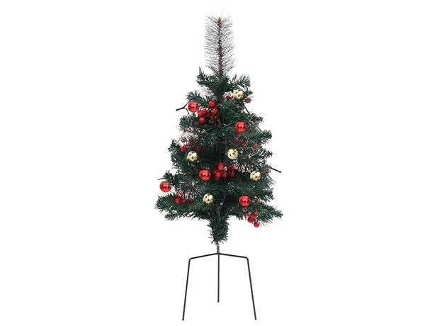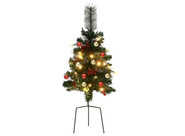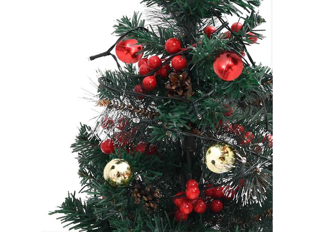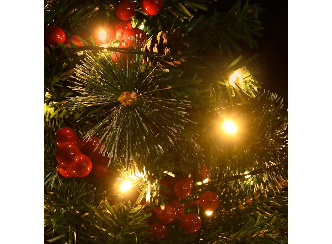 Acest frumos brad de Crăciun, cu ramuri din PVC, este foarte realist prin forma și aspectul său. Datorită luminilor LED, eficiente din punct de vedere energetic, este frumos iluminat și creează o atmosferă plăcută de sărbătoare. Decorat de conuri de pin, fructe de pădure roșii și globuri presărate printre ace, acest brad de Crăciun va aduce orice casă la viață. Țărușul de sol poate fi introdus în pământ, oferind bradului dumneavoastră o stabilitate optimă. Îl puteți amplasa în orice loc după preferințele dvs., cum ar fi la ușa de la intrare, pe hol sau pe alee. În plus, acest brad de Crăciun poate fi folosit din nou în fiecare an, ceea ce îl face o alegere foarte economică în comparație cu un brad natural.