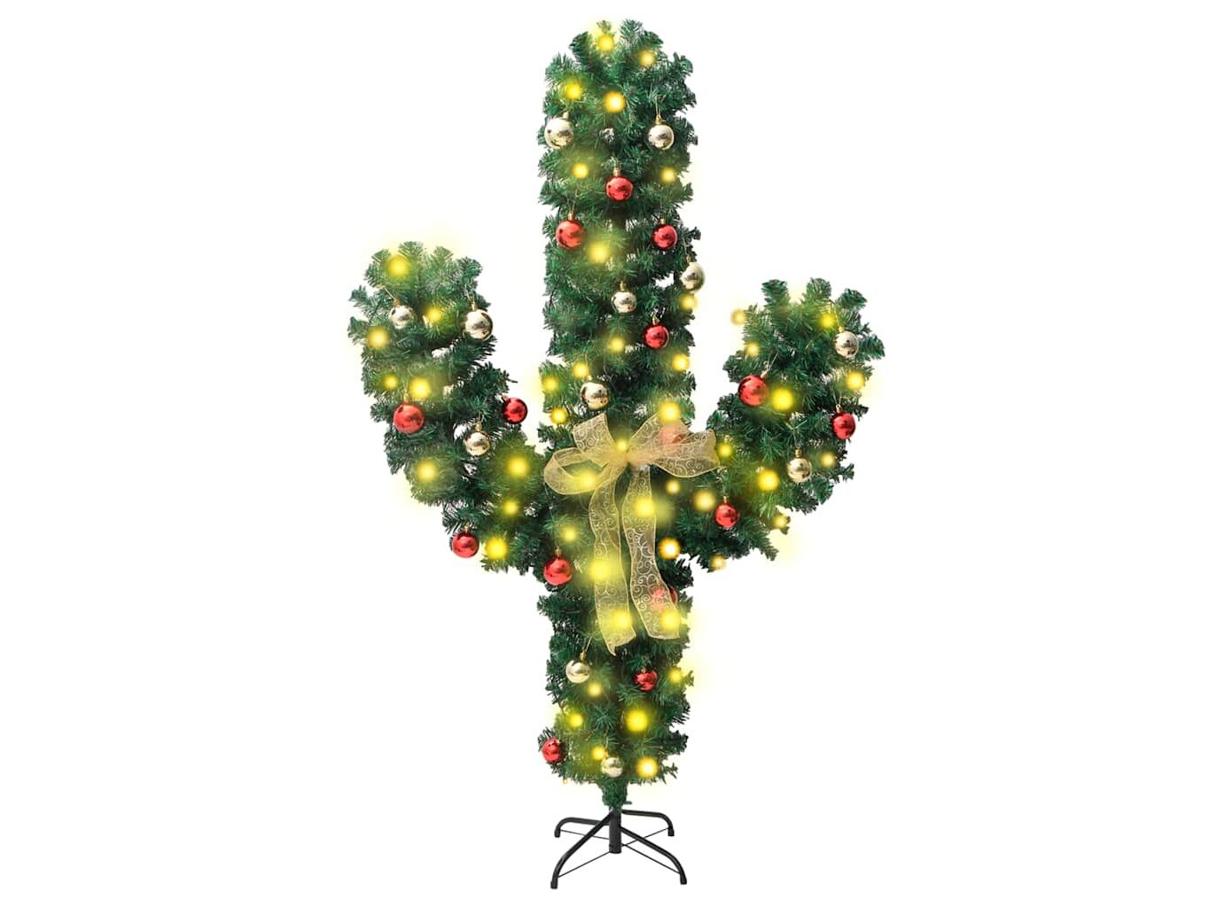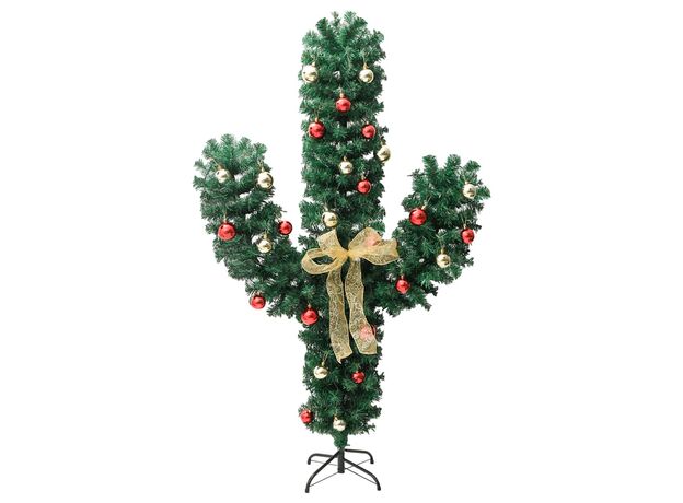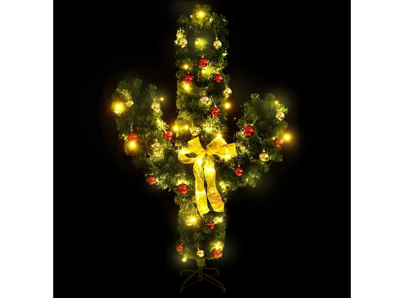 • Decorațiune frumoasă: Cactusul este împodobit cu globuri și papion pentru a crea o senzație unică de festival.