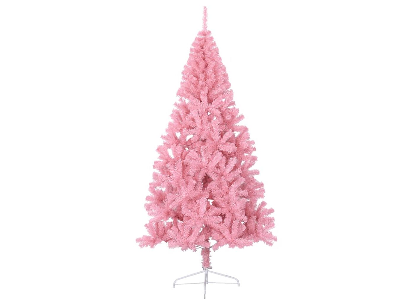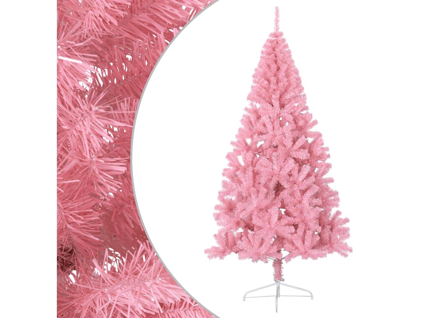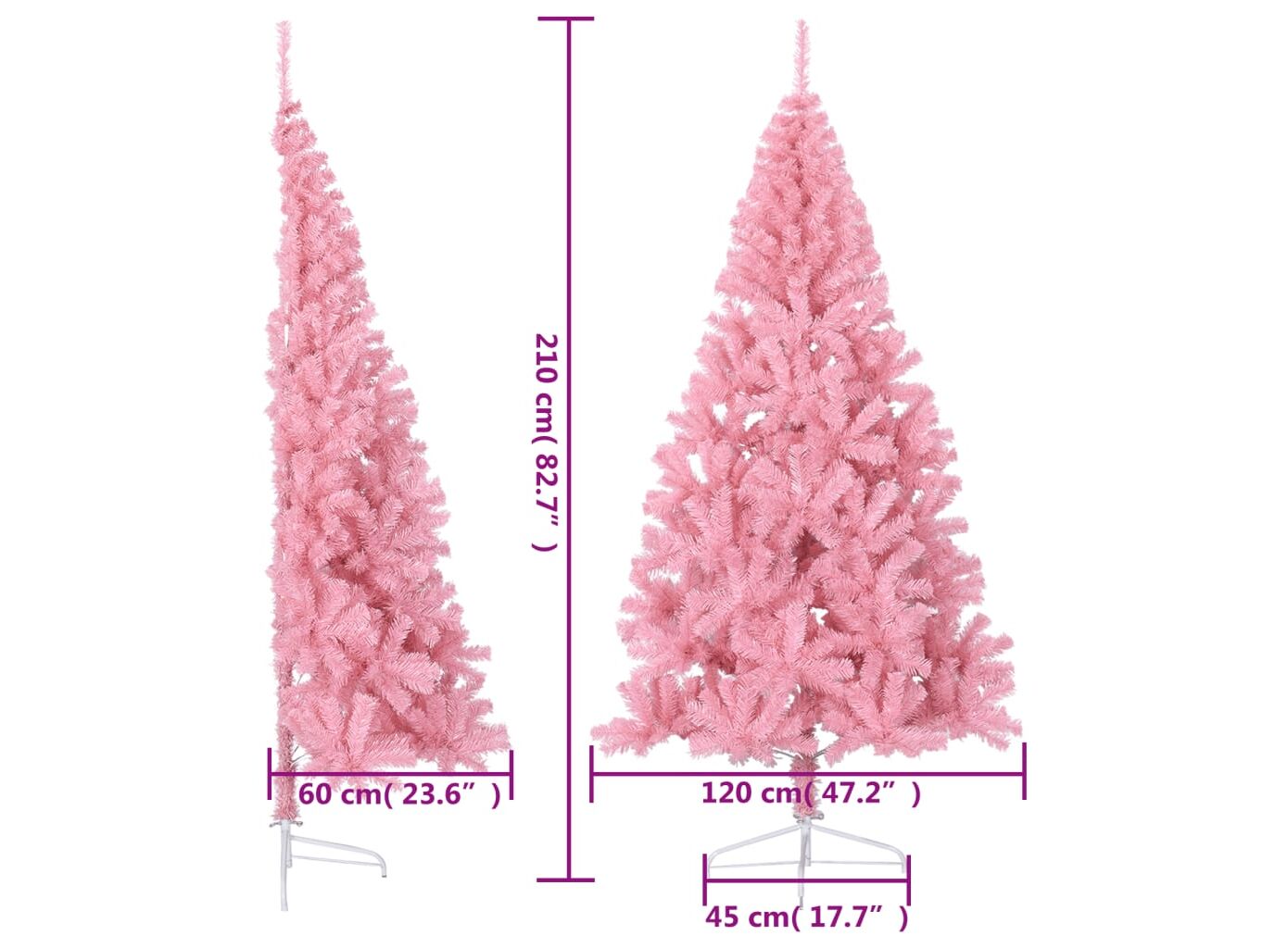 Jumătate brad de Crăciun artificial cu suport, roz, 210 cm, PVC