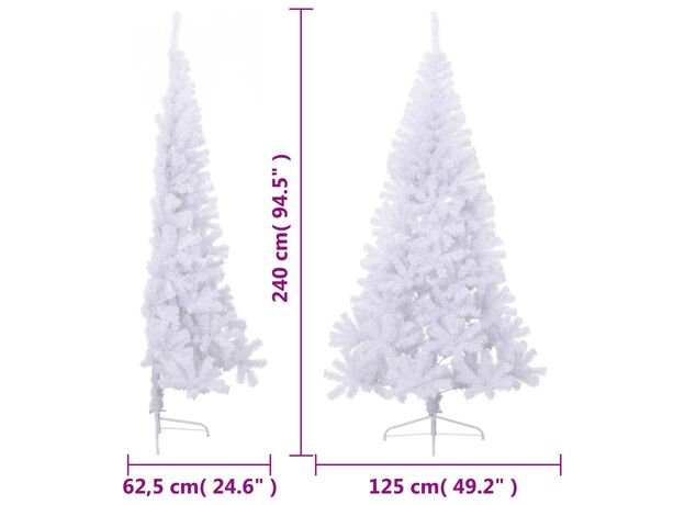 Brad de Crăciun artificial jumătate, suport, alb, 240 cm, PVC