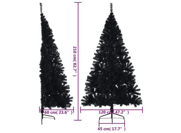 Jumătate brad de Crăciun artificial cu suport, negru 210 cm PVC