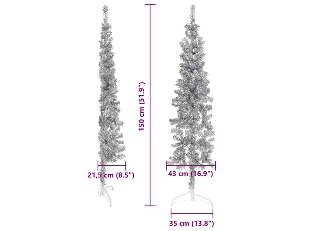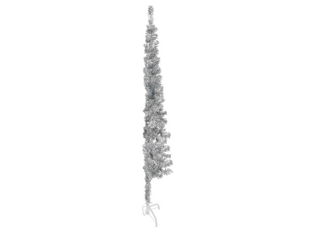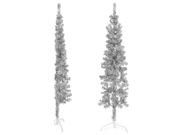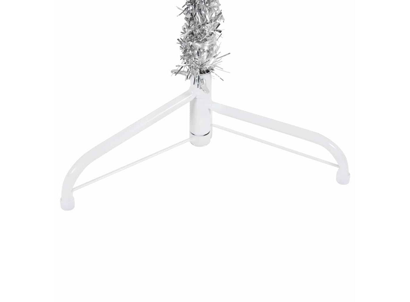 Jumătate brad de Crăciun subțire cu suport, argintiu, 150 cm